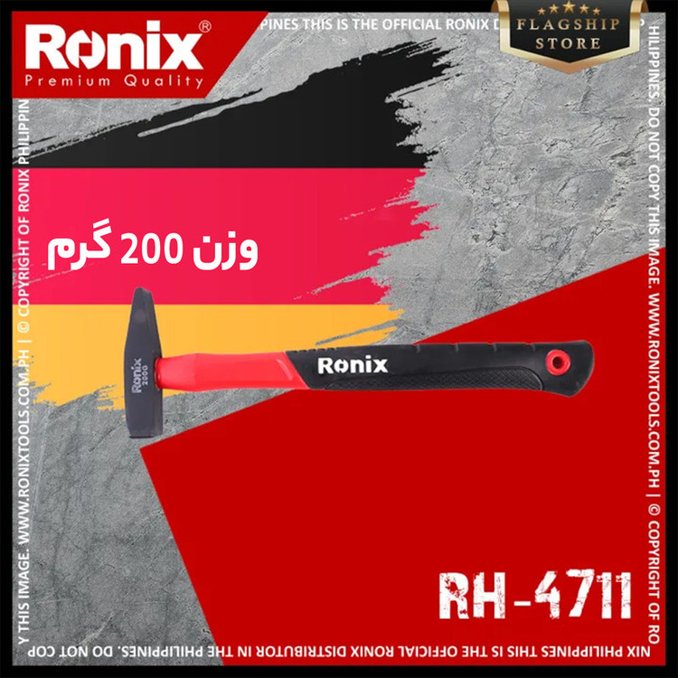 مدل محصول RH-4711 برند رونیکس یه چکش مهندسی با سطح مقطع مربع بوده و دارای دسته ضد لغزش و ارگونومیک از جنس فایبرگلاس بوده و همچنین روکش دسته از جنس پلاستیک ضد تعریق میباشد و همچنین دارای دسته سه جزئی با هسته فایبرگلاس میباشد و برای مصارف صنعتی و خانگی مورد مصرف میباشد .