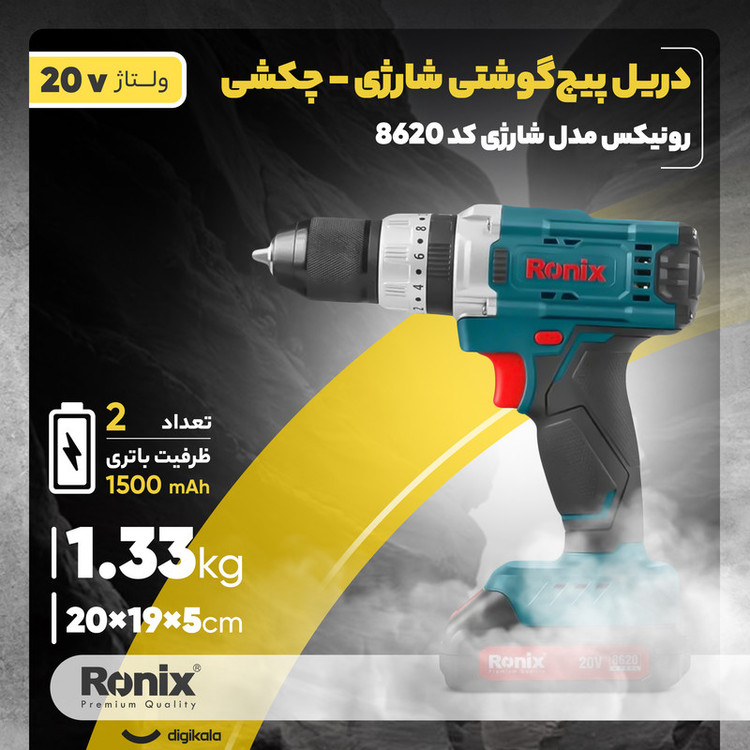 دریل پیچ گوشتی شارژی رونیکس مدل 8620، یک ابزار سهکاره و همهفنحریف است که برای پاسخگویی به طیف وسیعی از نیازهای خانگی و کارگاهی طراحی شده است. این دریل از برند رونیکس، سه عملکرد مجزای سوراخکاری معمولی، پیچکاری و سوراخکاری چکشی را در یک دستگاه جمع کرده است. این ویژگی به شما امکان میدهد تا با یک ابزار، روی سطوح مختلفی از جمله چوب، فلز و مصالح ساختمانی کار کنید. منبع تغذیه این دستگاه، دو عدد باتری لیتیومی ۲۰ ولت است که به شما اجازه میدهد بدون وقفه و با همراه داشتن باتری یدک، به کار خود ادامه دهید. گیربکس دو سرعته و قابلیت کنترل سرعت الکترونیکی، کنترل دقیقی بر روی قدرت دستگاه فراهم میکنند. سهنظام ۱۰ میلیمتری خودکار، تعویض سریع و آسان سریها را ممکن میسازد. بدنه مقاوم، چراغ LED برای کار در محیطهای تاریک و نشانگر میزان شارژ باتری، از دیگر ویژگیهای کاربردی این دریل ۱.۳۳ کیلوگرمی است. این محصول ساخت کشور چین، به همراه شارژر، باتری اضافه و کیف حمل ارائه میشود. در نهایت، دریل پیچ گوشتی شارژی رونیکس مدل 8620 با قابلیتهای متعدد، یک جعبه ابزار کوچک و قدرتمند برای هر خانه و کارگاهی است.